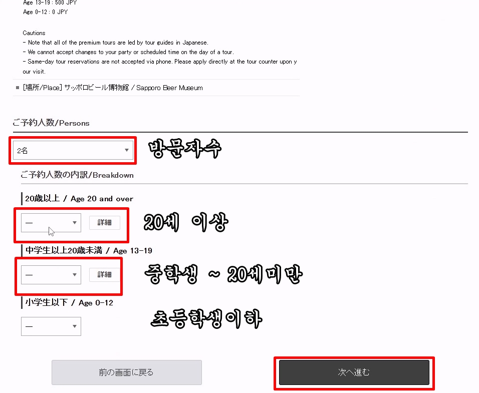 그다음은 투어를 함께 할 인원수를 먼저 설정해야 해