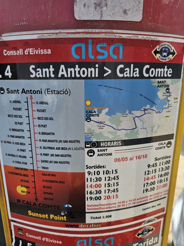 이비자 타운에서 산 안토니 가는 버스로 L3 버스를 타고 이동했습니다.