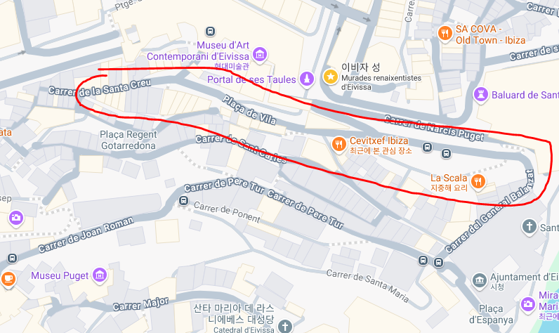 이비자 성 올라가는 방법은 지금 먹은 식당 옆길로 해서 가는 방법과