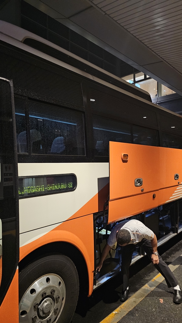 숙소가 많은 히가시 신주쿠역까지 한 번에 가는 가장 편한 방법은 바로 심야 리무진 버스입니다.