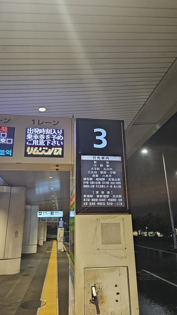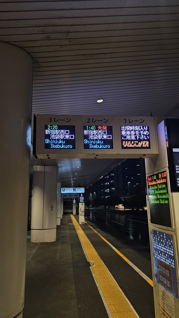 숙소가 많은 히가시 신주쿠역까지 한 번에 가는 가장 편한 방법은 바로 심야 리무진 버스입니다.