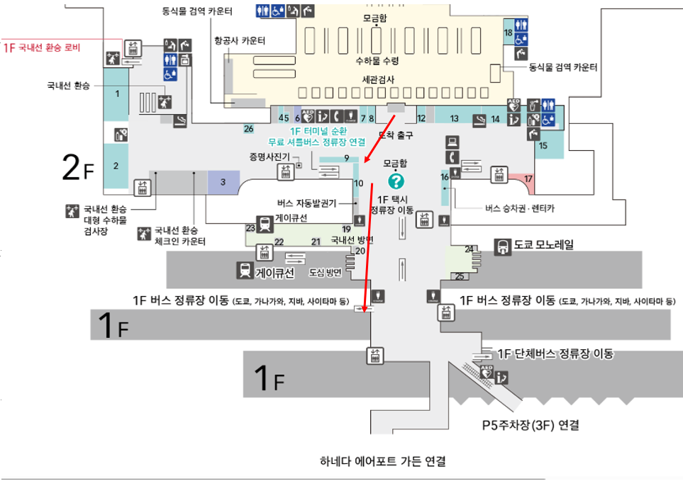 - 위치: 2층 도착 로비의 '버스 티켓 카운터' 또는 자동 발매기를 이용하세요.